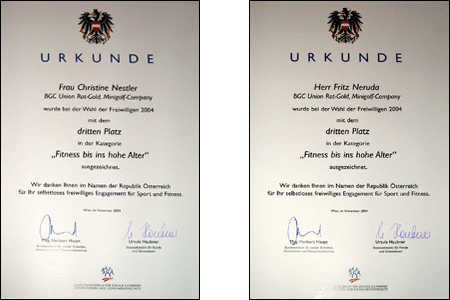 Die Ehrung erfolgte in der Freiwilligengala 2004 am 26. November im Magna Racino.